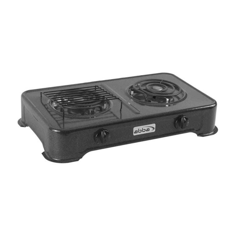 Cocineta Eléctrica, Mesa Porcelanizada Moteada, 2 Puestos, Frente:55,5Cm-Fondo:34Cm-Alto:11Cm; Resistencia Monotubular,120V / 220V, Parrilla Desmontable para Asar.