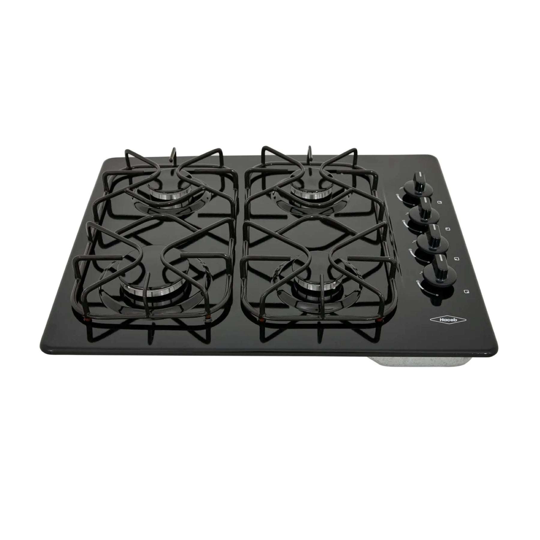 Estufa de empotrar a gas esmaltada color negro de 60 cm de ancho. Cuenta con 4 fogones en diferentes tamaños que se acomodan a los diámetros de tus ollas y pesos de tus preparaciones, parrillas con 8 puntos de apoyo que brindan estabilidad y seguridad. Es de muy fácil limpieza gracias a sus perrillas removibles. Enciende solo con girar las perillas.