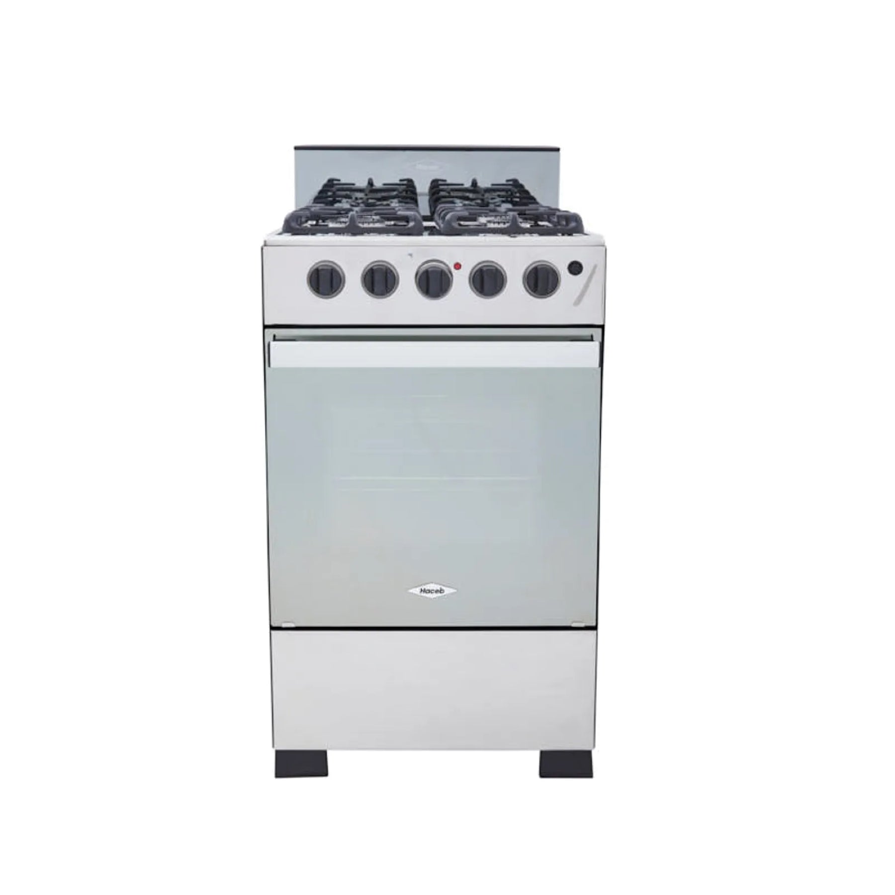 Una Estufa con acabados brillantes que hará lucir tus espacios amplios, 50 cms de ancho, con puerta del horno en vidrio espejo, parrillas en hierro fundido y fogones de diferentes tamaños. El horno ofrece un gran espacio interior y varios niveles de ubicación del entrepaño que además es retráctil para que cocines lo que quieras y des el toque dorado al final usando el gratinador eléctrico