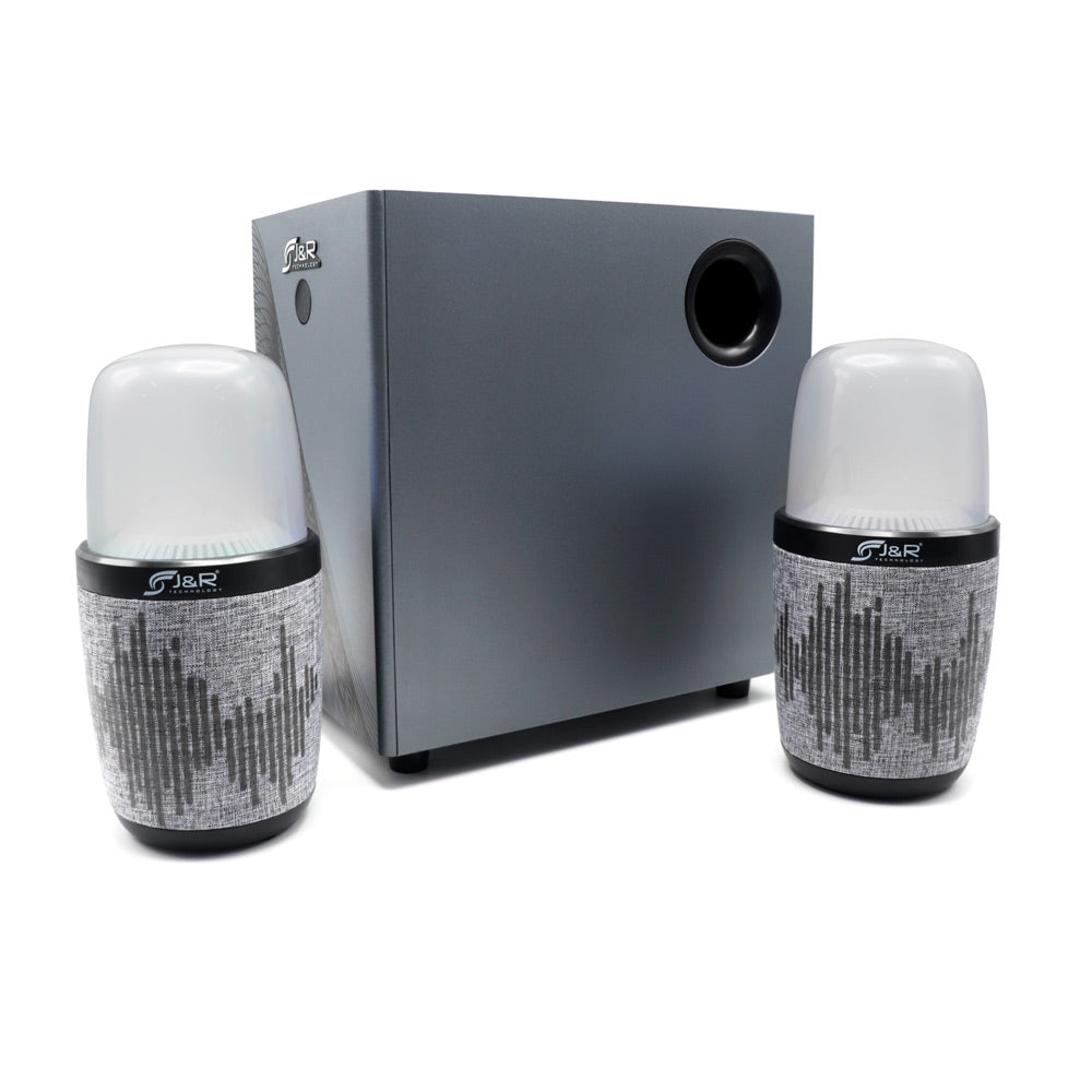 Función: Bluetooth, lector USB, Auxiliar. Teatro en casa con sonido envolvente 2.1, diseño exclusivo y elegante Premium Sound J&R Technology, sistema de audio para PC, TV, DVD BLURAY, PC, gran nivel de potencia: 49W, luz LED en los sátelites, cuenta con lector USB, función Bluetooth y radio FM, 3 canales de audio, super bass, incluye control remotoSubwoofer: 4" x 1 / 6 Ohm, satélites: 3" x 2 / 4 Ohm. Frecuencia de respuesta: 40 Hz-20 KHz. Relación ruido-señal: ≥ 71dBA.Cuenta con lector USB, función Bluetooth y radio FM, 3 canales de audio, super bass, incluye control remoto.