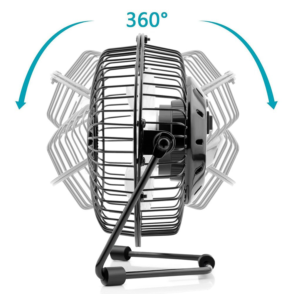 Ajuste de 360 °: Simplemente gira el marco del ventilador de escritorio y puedes disfrutar del viento fresco desde diferentes ángulos.
